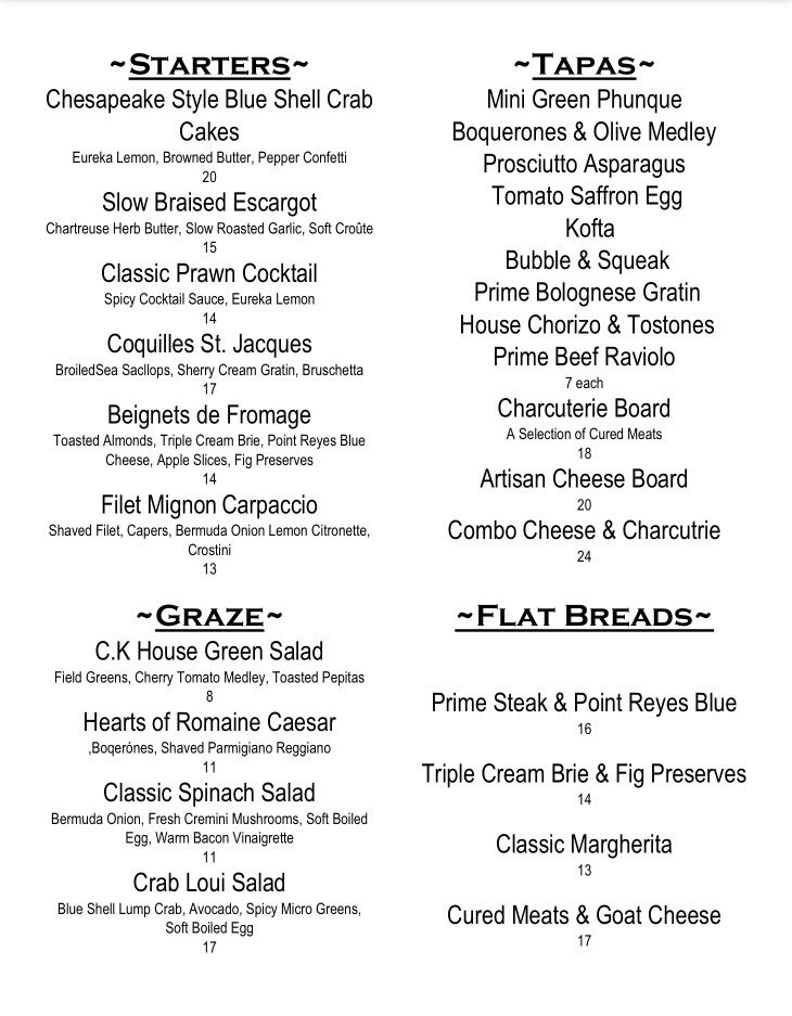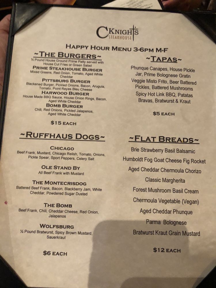 Whether you're indulging in the juicy filet mignon or enjoying a refreshing cocktail at the bar, C. Knight’s Steakhouse is sure to impress your palate.